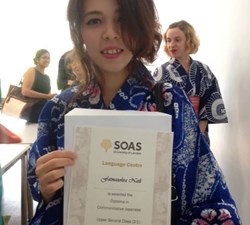 Fatma has a Diploma in Communicative Japanese gained at SOAS, University of London in 2016-17. In her hometown, Algiers, Fatma studied Law immediately after achieving her Baccalaureate and, afterwards, studied Korean and Japanese at the University of Algiers 2. Her main aim is to help generations of young Algerian language students familiarise themselves with Japanese culture, which Fatma deems to be an inspiration and a role model for her own country.